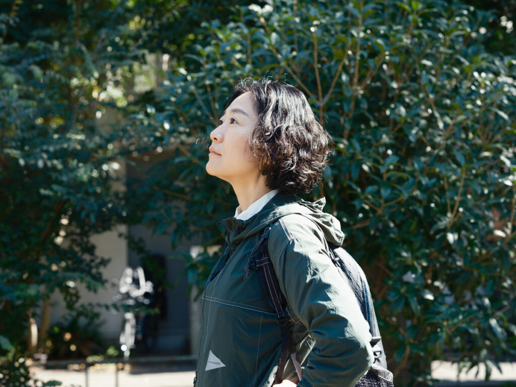 “I like nature that is kind of nondescript. Shibuya is actually a town with a lot of greenery, don’t you think?” mumbles Mori-san, just back from visiting Paris and London for the 2023 Fall/Winter season exhibition. An avid outdoor fan who enjoys hiking in mountains, backcountry skiing, and white-water rafting in Japan and abroad, she finds the greenery of cities just as enticing as the great outdoors.