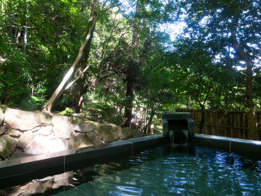 As you settle into the gently warm open-air bath and gaze out at the sweeping green mountains, you might find yourself picturing the white fox that once wandered these very hills.