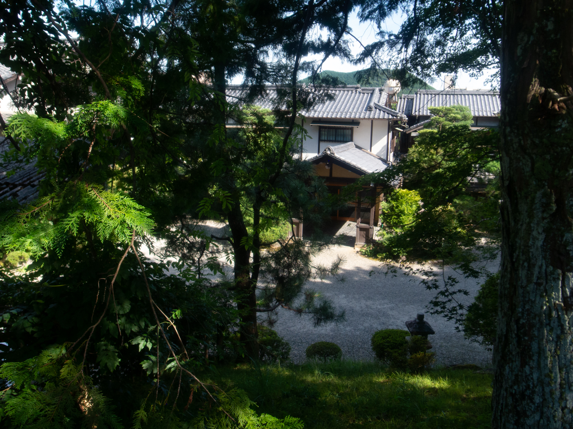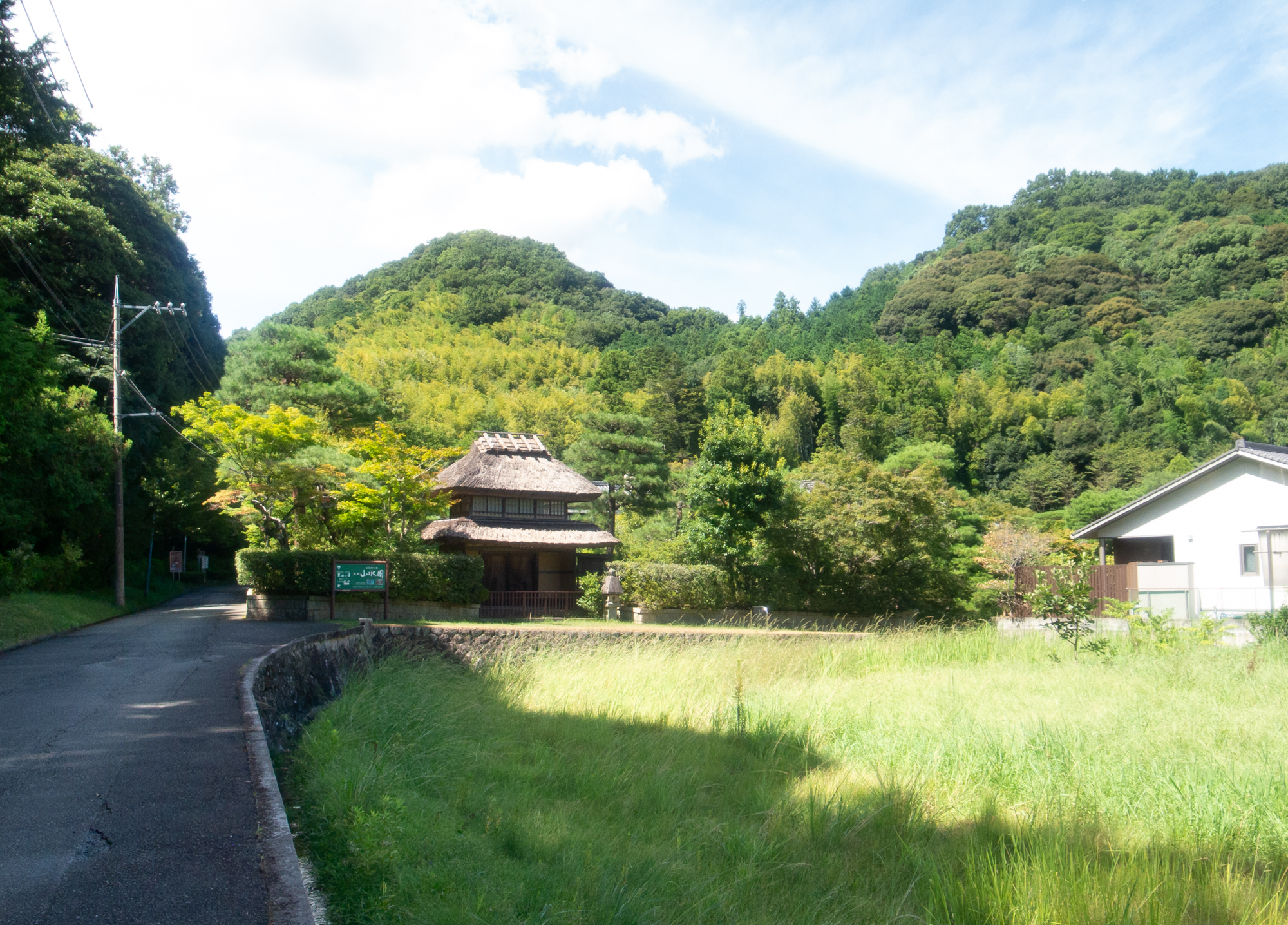 The white fox’s former dwelling, Mt. Gongen, sits not far from YCAM (Yamaguchi Center for Arts and Media). Walk past the center’s spacious garden and head toward the mountain, and soon the thatched roof of Sansuien comes into view.