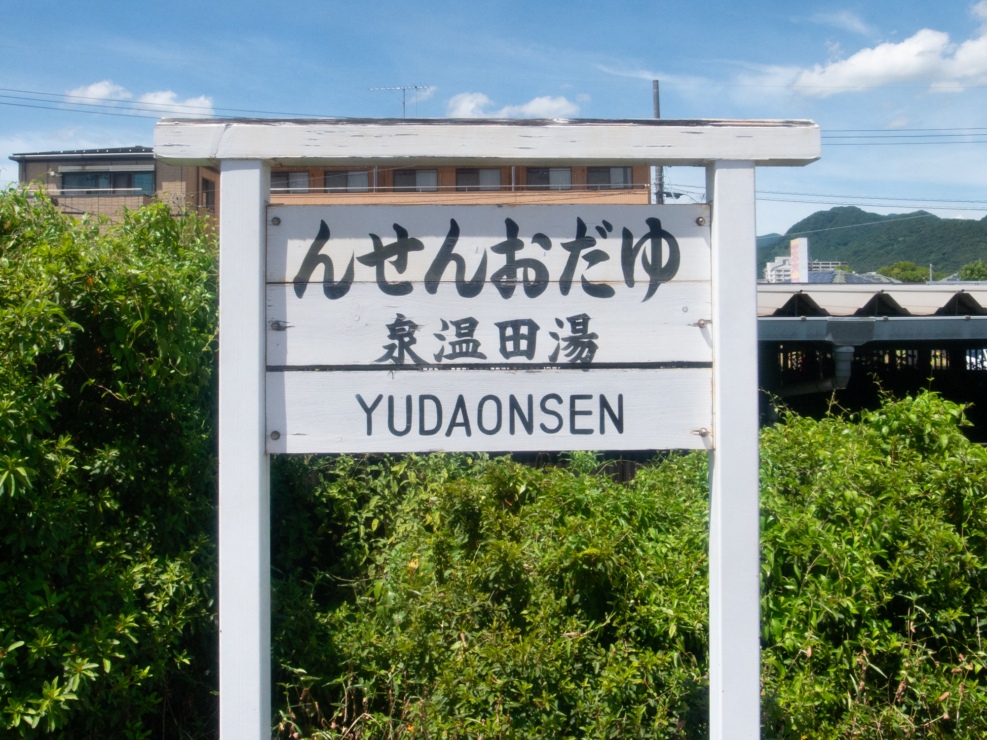 Hop aboard the strikingly bright red train, and after about 15 minutes of scenic views, you’ll arrive at Yuda Onsen Station, named after our destination.