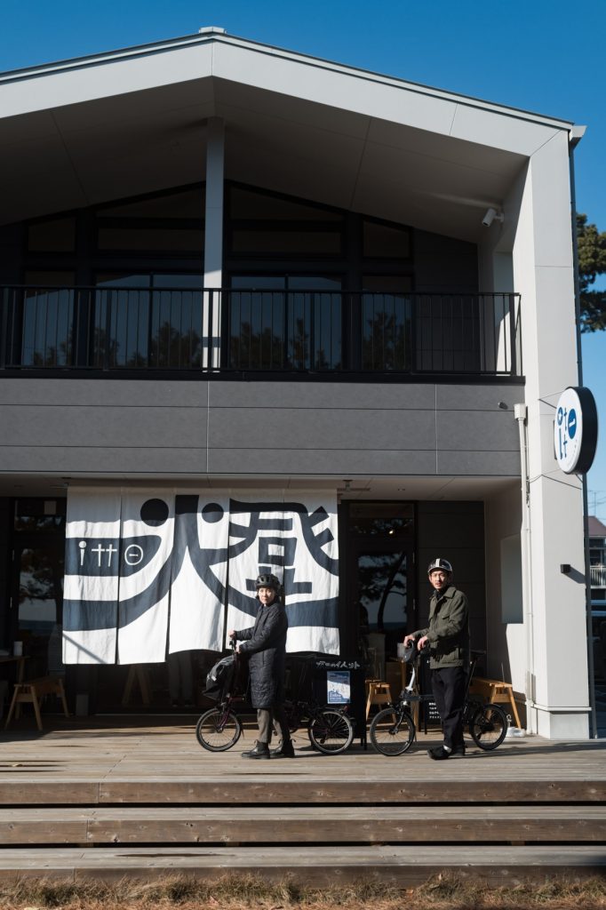 After soaking in the hot spring bath, we fold our Brompton bikes, put them in the bike bags, and take the JR Tokaido Line from Yaizu Station to the next stop, Mochimune Station. The Mochimune area is undergoing redevelopment and creating a buzz with the opening of privately owned cafés, small restaurants, and housewares shops. Our goal on Day 1 is The Villa & Barrel Lounge near Mochimune Station. The hotel is run directly by a craft beer brewery based in Shizuoka.