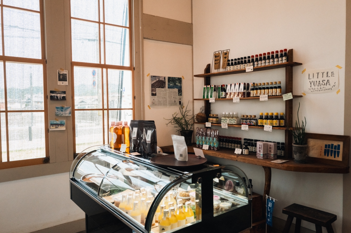 The gateway to the town of Yuasa is Yuasa Station. The old station building that opened in 1927 currently houses Yuasa Beisho, a diner serving meals flavored with Yuasa’s specialty soy sauce. We stuff our bags with the signature rice balls and enjoy them on the road. The fluffy oven-cooked rice and fillings featuring the deep flavor of the soy sauce are the perfect match!