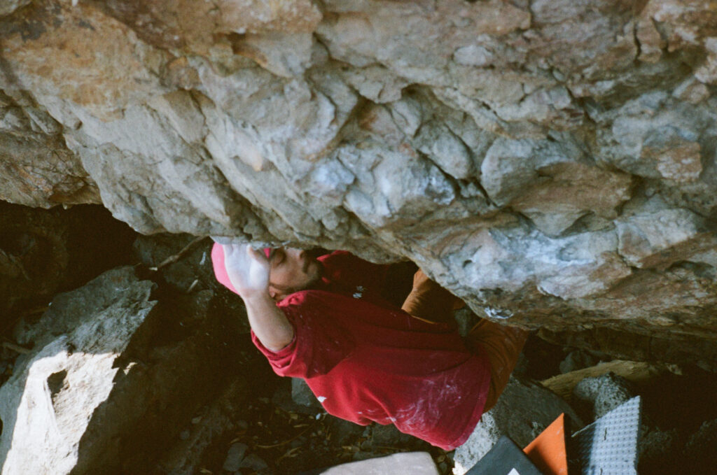 There is a local climber who is an indispensable part of my Shikoku rock trips. It is Koji, a strawberry farmer I encountered on a rocky beach during my first trip to Kochi and to whom I am much indebted. I was literally groping around for rocks by hand when he kindly lent me a topo book and gave me information on the location of the boulders and where to park. I have been so spoiled by his Buddha-like kindness that I now go to see him every time I visit him and borrow his crash pad. He is an irreplaceable part of my Shikoku rock trip plans.