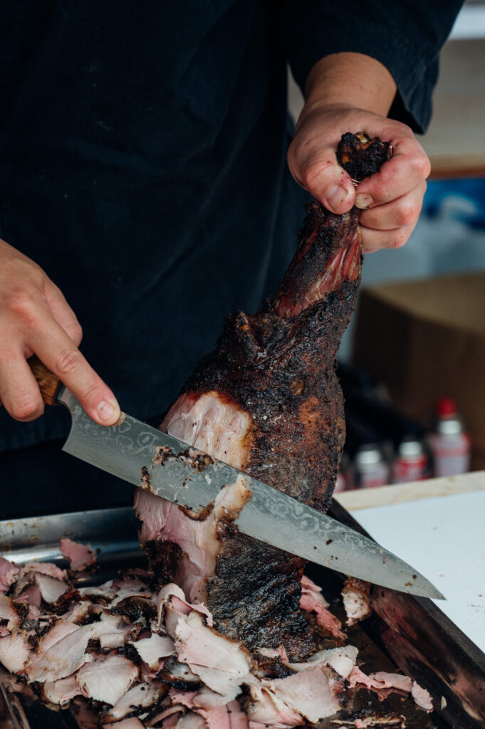 Anna, who runs ishinoko kitchen, the food program at the festival, sees this process of mutual growth as the festival’s raison d’être and has worked to reflect it in the food served. As a Dane and newly-arrived in Ishikawa four years ago, she was able to dig into the prefecture’s edible landscape thanks to the kindness and acceptance of locals. The kitchen’s program therefore brings together local growers and producers with chefs from all over the world to cook up 3 days of meals combining local and seasonal ingredients, such as wild boar trapped and prepared by local hunter Sakura and seasonal produce such as mushrooms, myoga, and citrus, with chefs’ native techniques. The resulting food not only nurtures bodies but also minds by expanding ideas on what and how ingredients can be consumed.