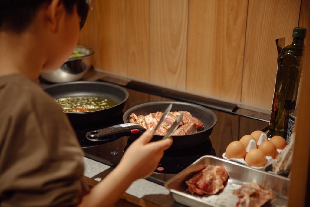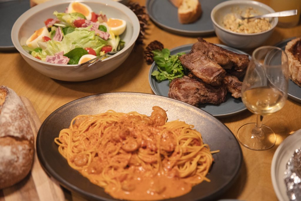 Bring your chosen ingredients back to the cabin and lay them out in the kitchen. As everyone begins to move, a soft rhythm emerges in the space, even without assigning roles.