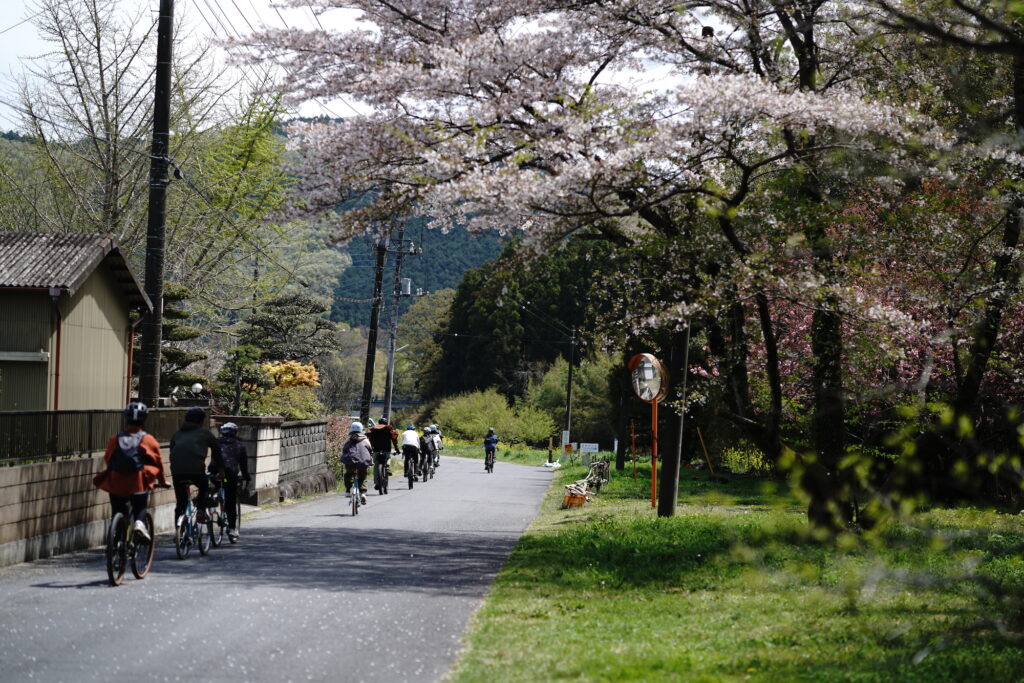 Back down the mountain, we hopped on our bikes again and headed for MOZART, a café in the nostalgic former Shimozato Annex of Ogawa Elementary School. Under the fluttering cherry blossom petals in the schoolyard, we enjoyed boxed lunches packed with locally grown seasonal vegetables paired with healthy, deeply energizing drinks. The soothing smile of the café’s helper and mascot girl, Kona-chan, and the beauty of the cherry blossoms brought our relaxing lunchtime to perfection.