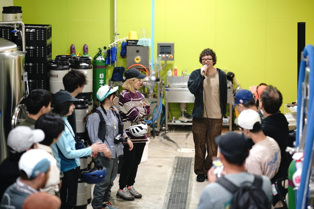 After saying good-bye to Mr. Aoki, we pedaled on and spotted the stylish building of Teenage Brewing. The owner, Daichi Mori, gave us a brewery tour and showed us his lineup of over ten varieties of craft beer with artistic can labels, from which we selected our favorites and bought as souvenirs of the trip. It was a long ride from here. We mashed on the pedals of our Kona Bicycles going uphill, and before long, stopped to take a break for ume juice at the Ogose Plum Grove. Chill, have a good time, and enjoy the ride—that’s Tour de Nippon style.