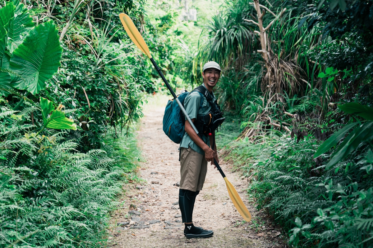 1972年に「西表石垣国立公園」に指定された西表島は、滝や森の探訪には人数制限とガイド同行が義務づけられている。釣りの翌日、僕たちはガイドの宇野弘鷹さんに案内され、ピナイサーラの滝を目指した。