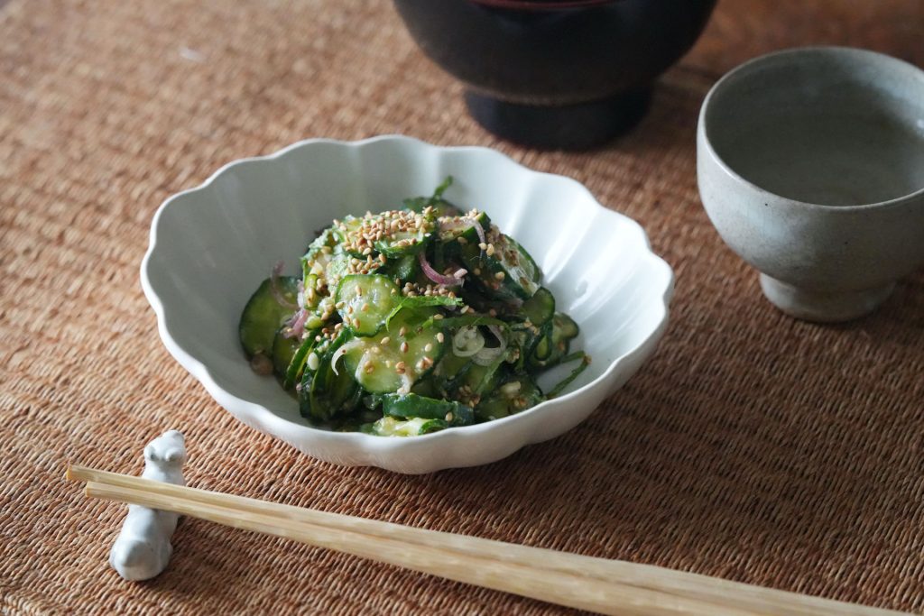 その味噌で和えた「きゅうり和え」は、薬味の香りと味噌のコクが絶妙に合わさり、そうめんにも、ご飯のおかずにもぴったり。炒り直したごまを加えれば、香ばしさがぐっと引き立ち、夏野菜がご馳走になります。手早く作れて、暑い日にもさっぱり食べられる一品です。
