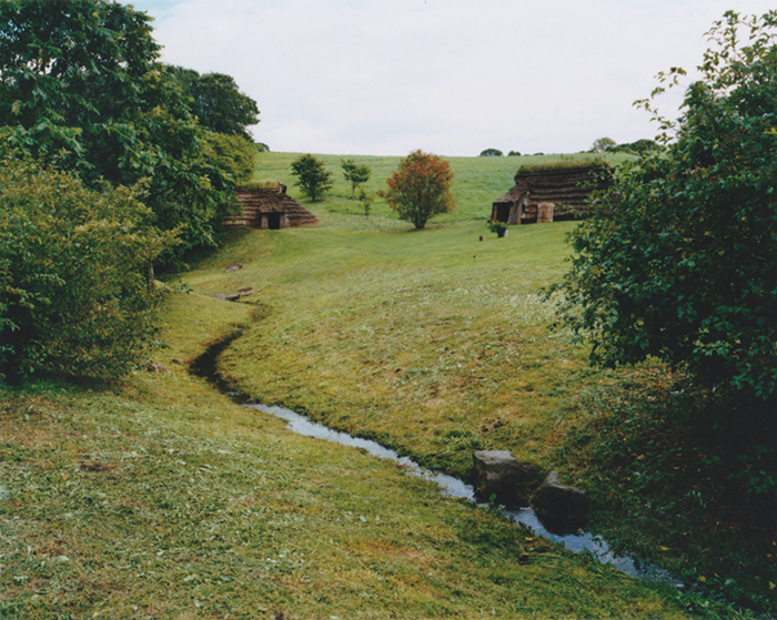 住居はかつて建てられていた場所にそのまま復元され、水源が今も残る。