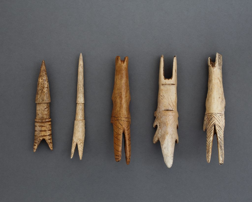 オットセイやイルカなどの海獣を捕るための道具の先端部。表面に美しい文様が施されている。