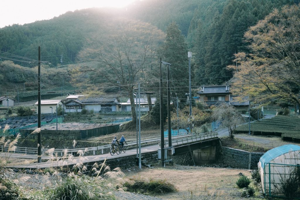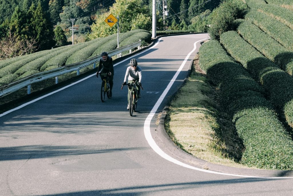 3日目、「みかんせい」のクレアさん&史朗さんに別れを告げて出発。この日は川根本町から島田まで、大井川を辿る川セクションである。周囲を茶畑に囲まれた舗装道はフラット基調ながら、一部の区間は交通量が非常に多いので注意しながら進む。