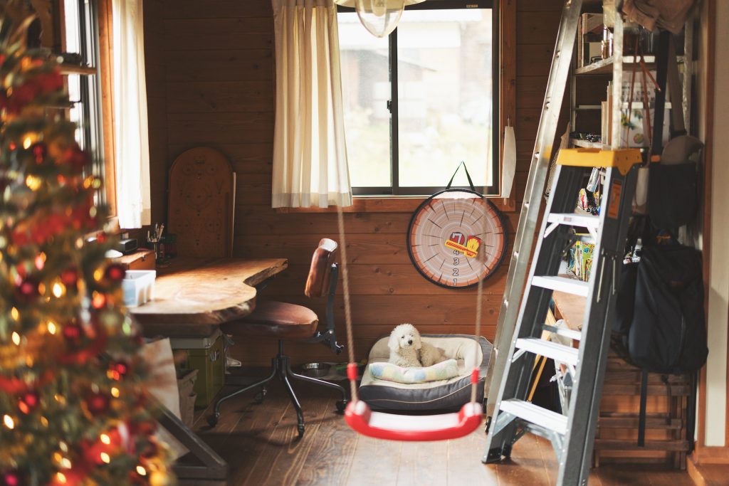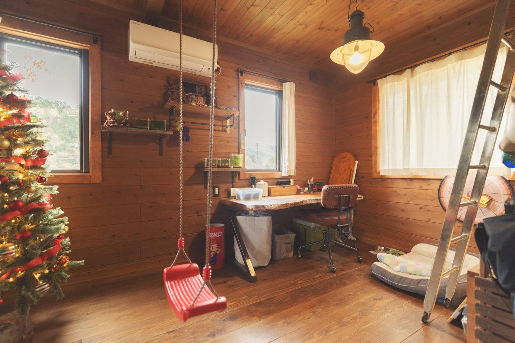 翔太 「現代的なマンションとかと違って、木の家には虫や風が入ってきたりもします。だけどそういう毎日のことがストレスじゃなくて、楽しさや発見に変わっていくし、家自体を可愛いと思えるようになるんです。床や壁とかも経年変化しますし、ログハウスは建ててから1~2年くらいまでは、セトリング(木材乾燥によるログ壁が沈み込むこと)するので、メンテナンスのタイミング ※ で調整が必要だったりもする。だから手がかかるんですけど、子どもと同じですよね。お世話して変化しながら育っていくから、愛着というか可愛いと思えるようになる。木の家って生きてる感じがするんですよね」
