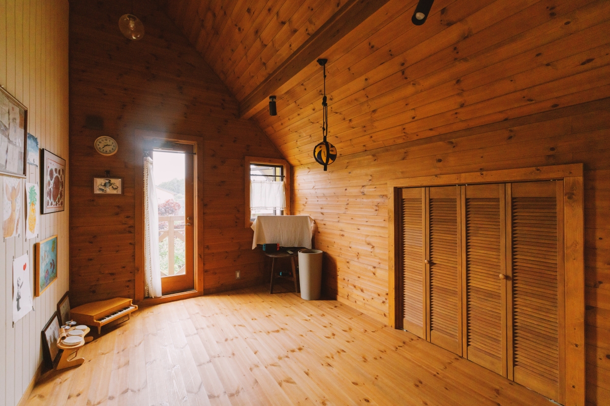啓介 「そうやってLOGWAYを巡るうちに『カントリーログ』に一目惚れしてしまったという流れなんです。決め手は三角屋根と窓ですかね。LOGWAYで『カントリーログ』の中から広い窓を通して見た景色が、今の土地の風景に似ていて、家の中からこんな眺めが見られたらとてもいいなと」