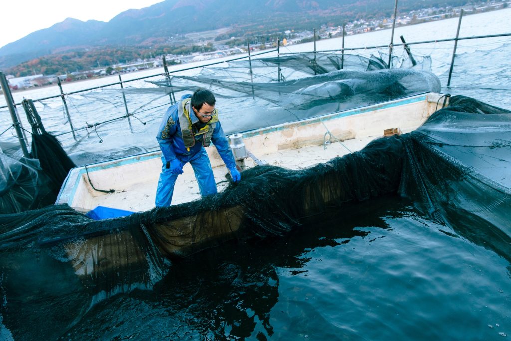 滋賀県の、あるいは琵琶湖の、といってもいいが、南西エリアにある大津市。県最大の繁華街があり、京都にも近いという利便性がありながら、畑と山、そして湖と密接に関わった暮らしが営まれている。この地で魞(えり)漁の漁師に弟子入りして3年、独立して4年。和邇(わに)漁港から毎日漁に出るようになって7年になる。